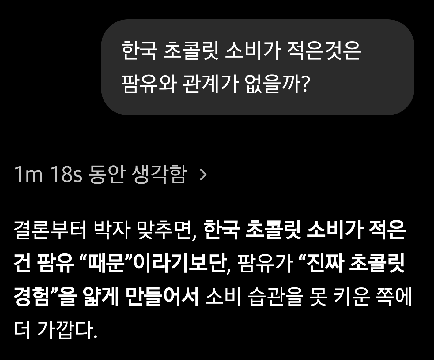 저질 초콜릿 문제였으면 지금은 초콜릿 시장이 폭발적으로 성장했어야 했는데