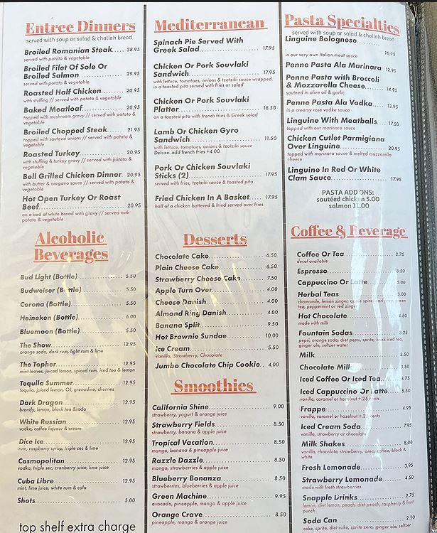 미국 다이너 식당에서 볼 수 있는 요리들.diner