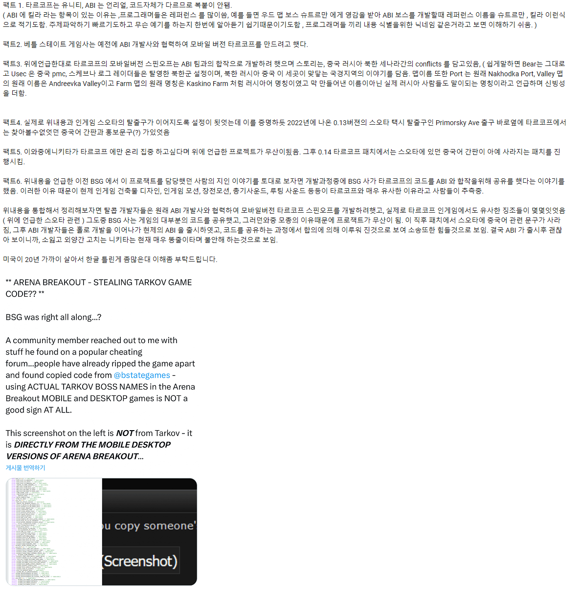 현재 타르코프 짝퉁겜에 대한 탈콥유저들의 상태