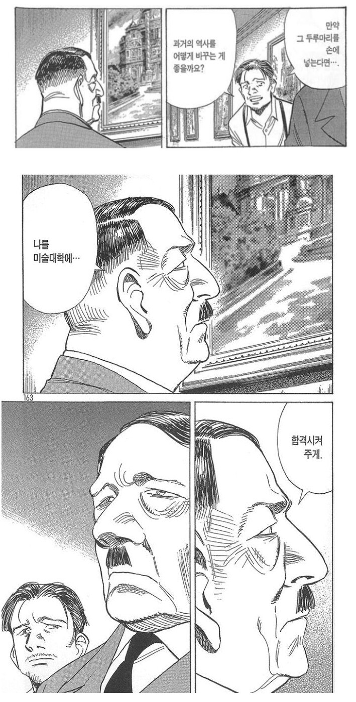 하지만 모든 사람들이 준비없는 변화를 받아들일 순 없었고, 그들 사이에는 미대에 떨어진 후 M창 인생을 향유하던 커미션 작가 아돌프 히틀러도 있었다 (실제로 낙방 이후 히틀러는 엽서 그림 의뢰로 먹고 살았다)