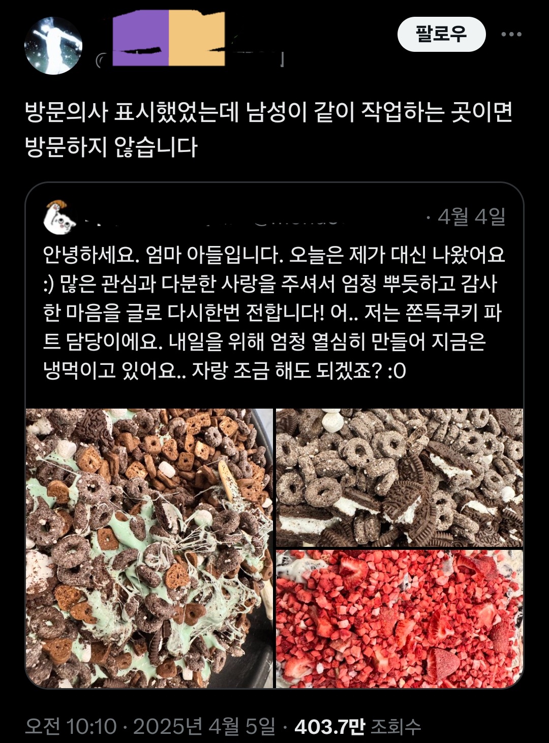 - 존잘 팔로워가 늘은 X 유저
