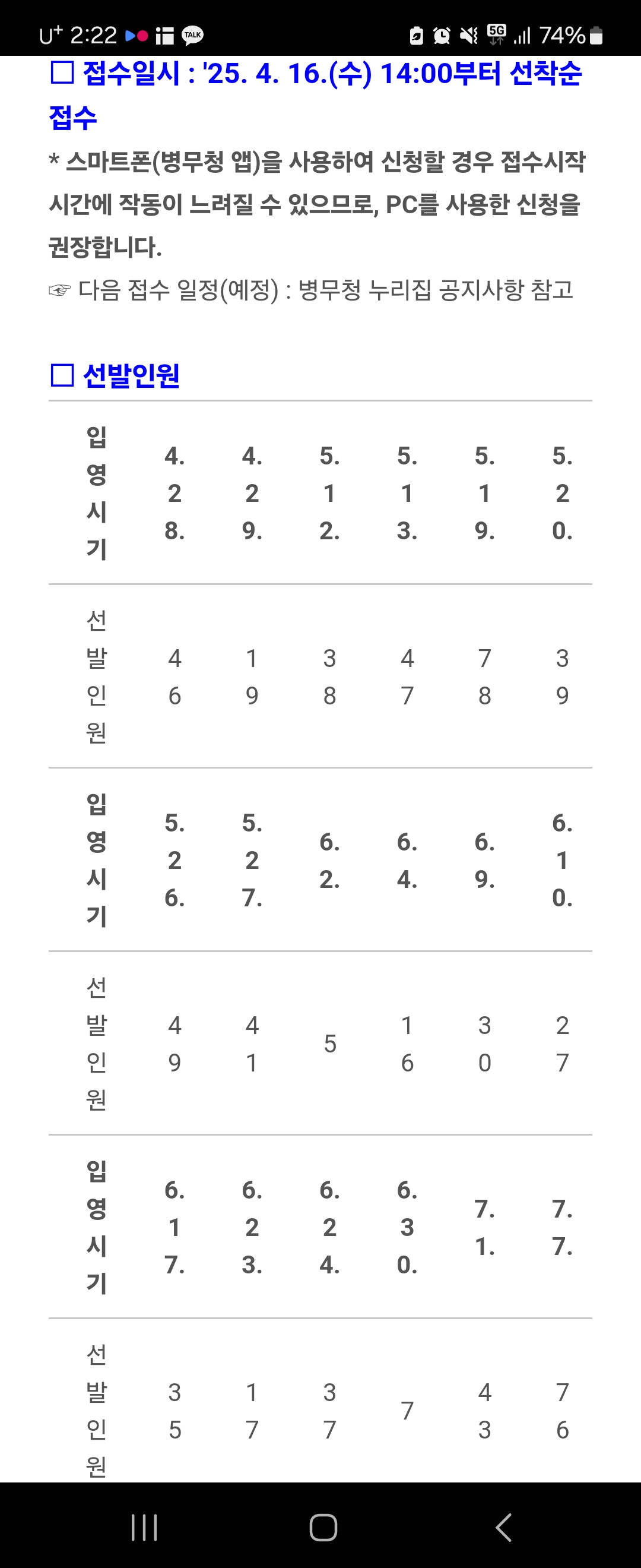 수강신청을 잘못해서 6월 상순까지 군대에 가야하는데 현역병입영본인선택으로 지난주에 들어가보니까 11/12월 밖에 자리가 없더라고요