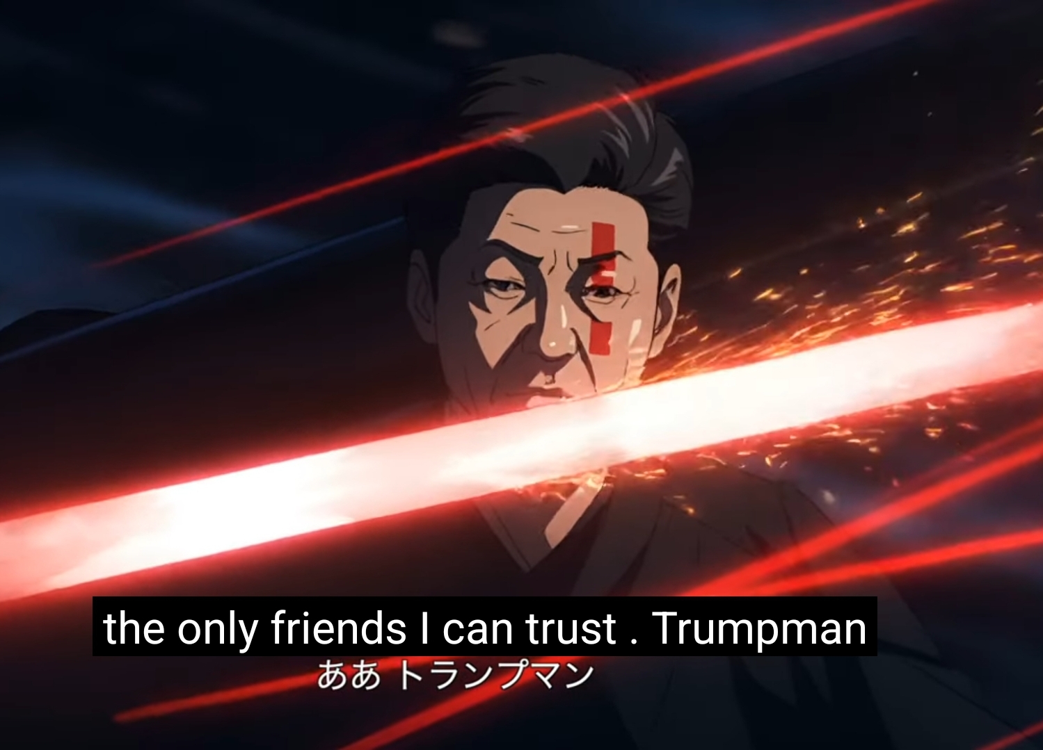 진핑거맨이 애니속 암흑조직 "유니피케이션"의 암살자를 비겁하게 고용해서 죽은줄만 알았던 트럼프의 영원한 라이벌이자 친우, "아베 더 불렛"이 류노킨타마의 힘으로 돌아와서 세계정복을 꿈구는 진핑거맨을 억까의 억까를 이겨내고 마지막 순간에 트럼프맨과 초필살기, The World's Greatest Liars를 써서 진핑거맨을 두동강내는 장면이 너무 인상적이었는데 와... 앀ㅋㅋㅋㅋㅋㅋㅋㅋ