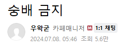 저는 카페에 숭배금지라는 공지 올렸는데용. 이거 하나라는거임.
