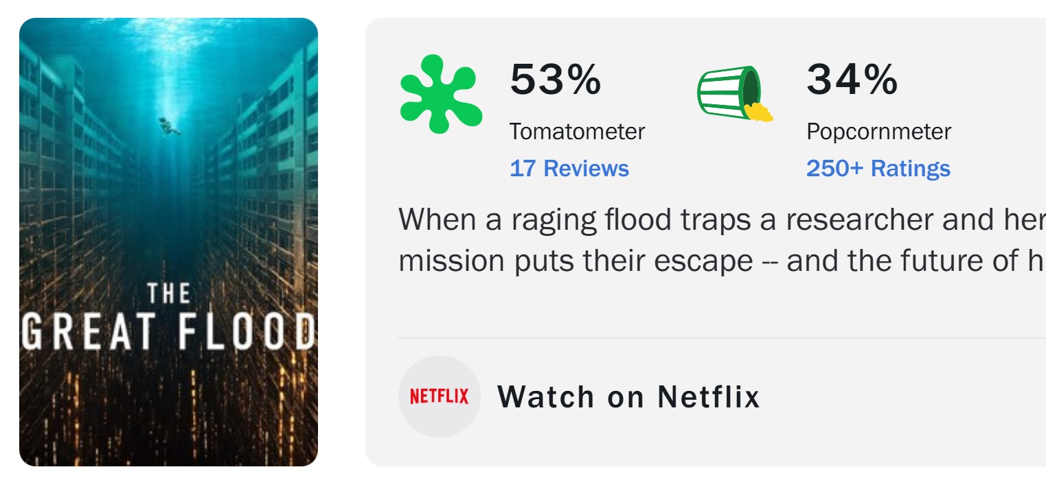 대홍수 넷플 1위 찍었다고 사실 명작이다 재평가 필요하다 운운할 필요 없는게