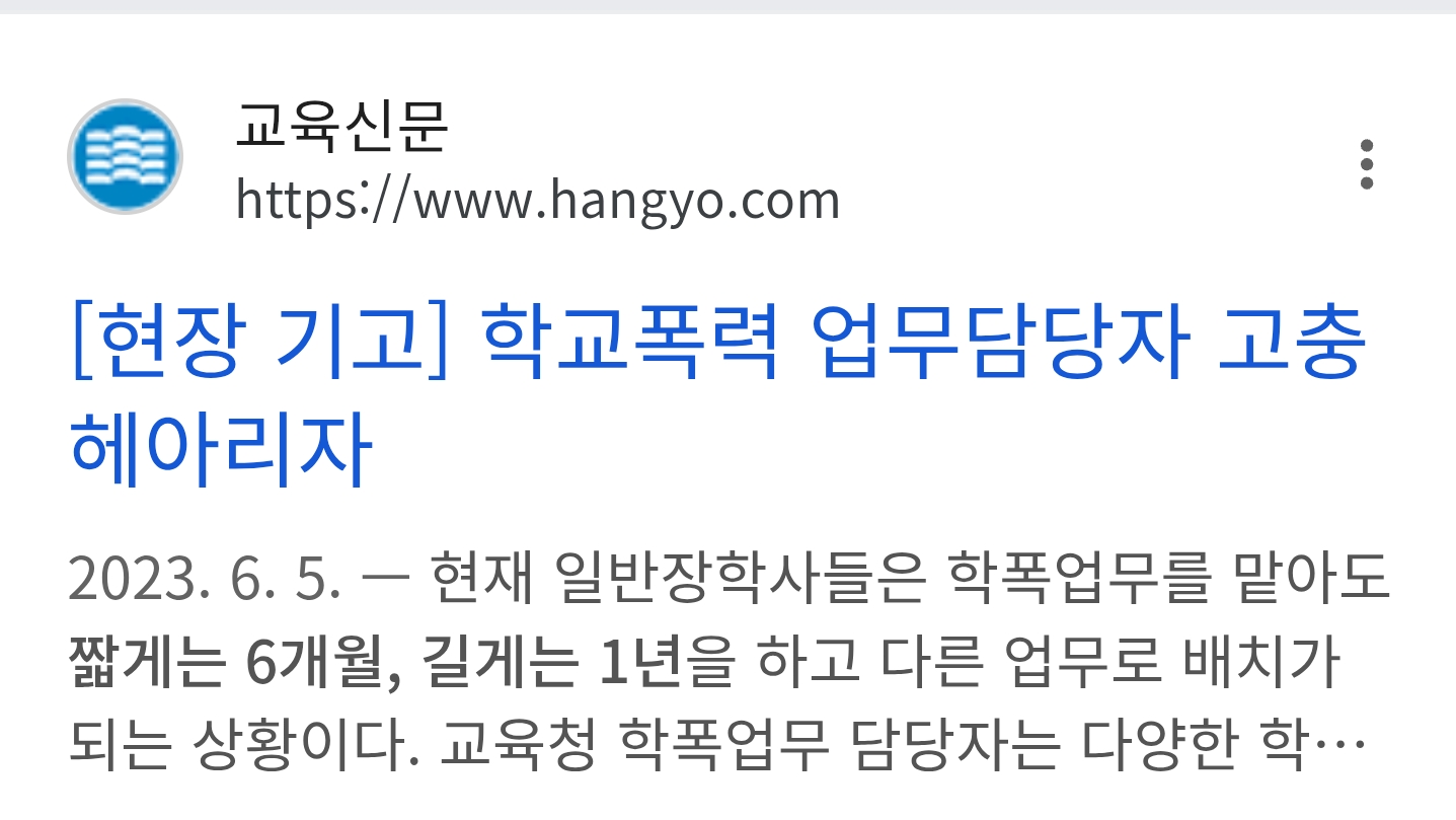 다만 사안 조사를 학교에서 하고 싹 정리하고 조율한 것을 교육청에 보고해야하는 게 1차적으로 힘들고