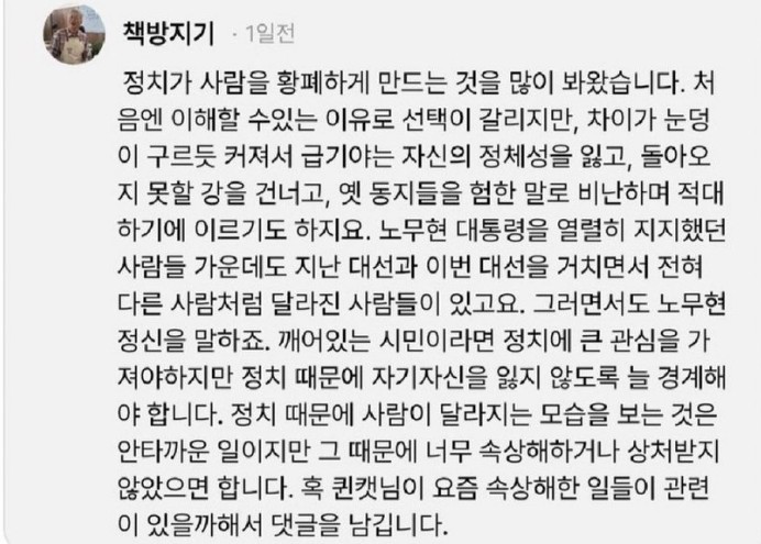 외부상황으로는 뭐 임기도 끝났겠다 느긋하게 책방도 냈겠다.