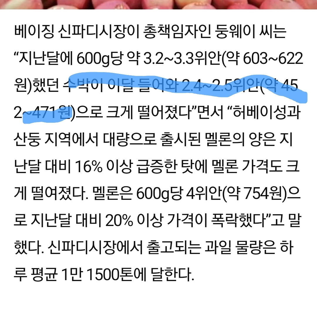 2. 한국내 고기 가격을 위안화로 계산하면 엄청 비쌈