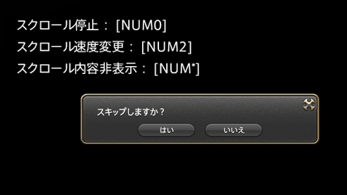 ◆ 'Esc'키/'B(X)' 버튼을 눌렀을 때 표시되는 스킵 확인 창에서 이용 가능한 기능과 조작을 확인할 수 있게 됩니다.