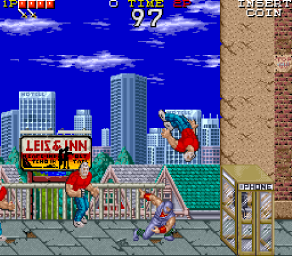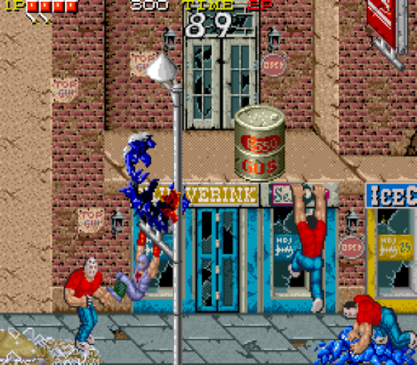 상대방을 쳐서 날려버리거나 던져 간판이나 송전기 등을