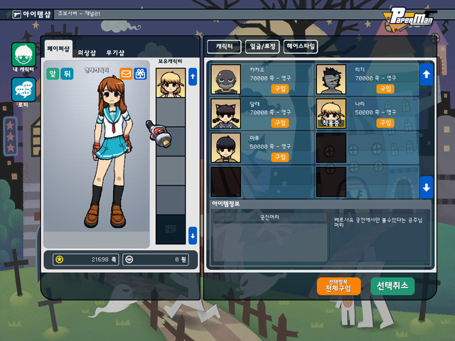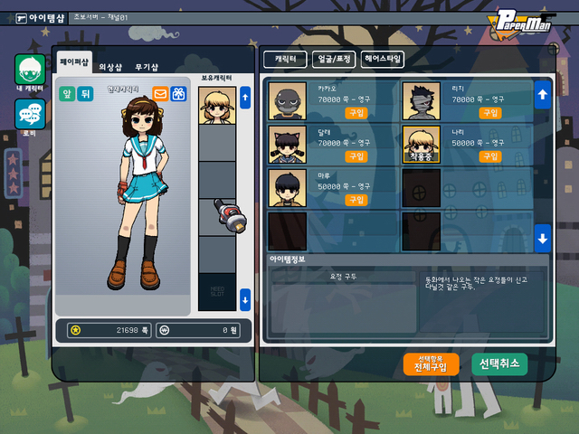 캐릭터 상점에서 하루히 코스튬을 판다는 점이 굉장히 신선한 충격을 줬던 페이퍼맨.