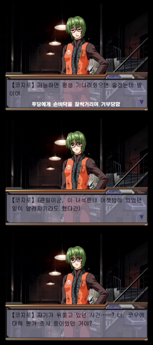 이토록 손이 많이 가는 연재는 처음임 여러장면과 대사들중 놓쳐서 설명처리한것도 있지만 일부러 스샷 줄여 적당히 찍기에도 뭐한 게임같아보여서 그렇습니다 여기서 또 시점변경할 때가 와서 캐릭터를 바꿔 플레이할 때가 되었음 코지로편의 하루마저 마무리 하려니 스샷만 200여장, 10개씩 포샵질로 묶어도 20여개의 이미지파일이라 심하게 길어져서 다음에 계속