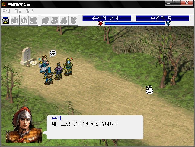 손책이 빈사상태[체력 10 이하였나?] 되었을 때 발동합니다.