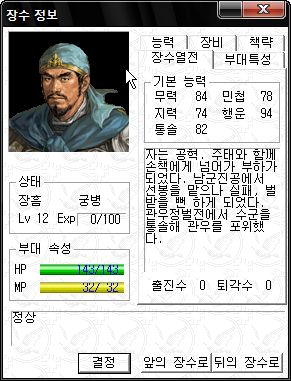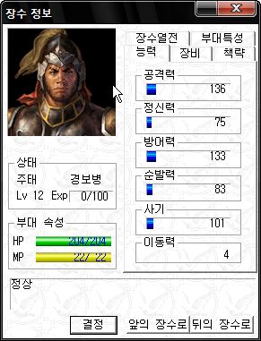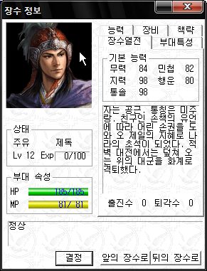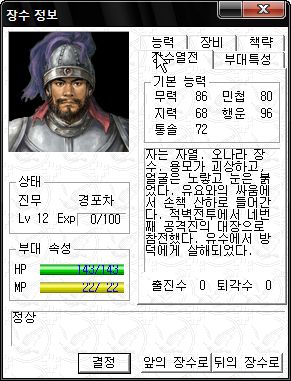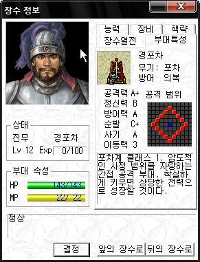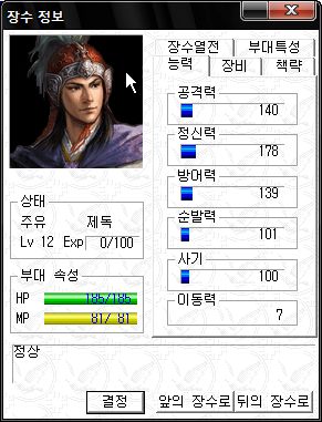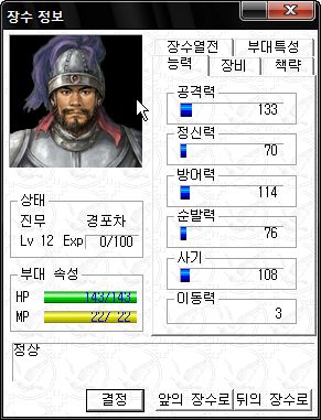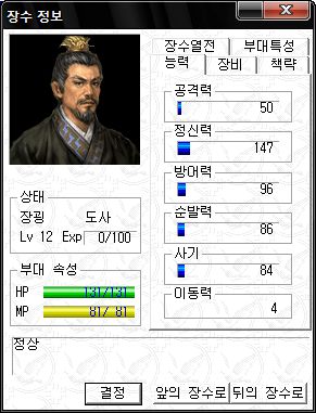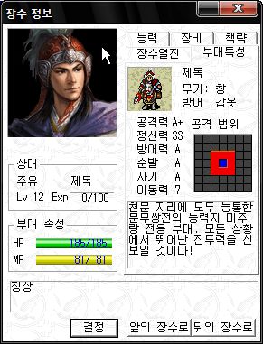 정신력 SS -_-;; 타 능력 역시 기병 이상가는 화력을 보여주는 만능 괴물 주유