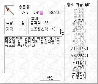 그의 무기 총통창은 공격력과 정신력을 둘다 올려주는 만능병기