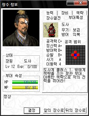 장소의 병과는 책사 입니다.