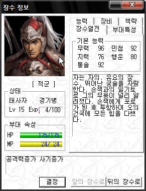 태사자의 병과는 기병입니다.