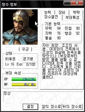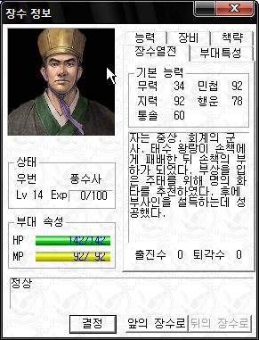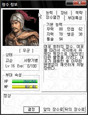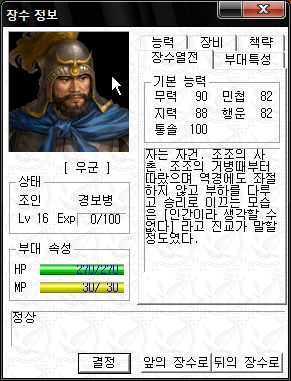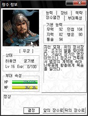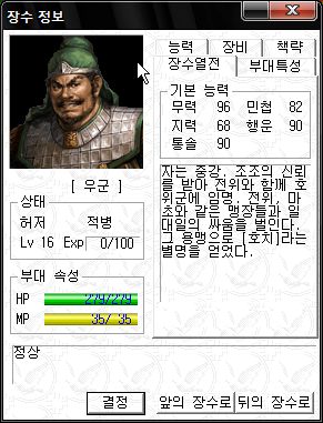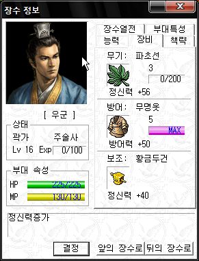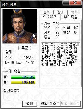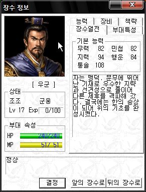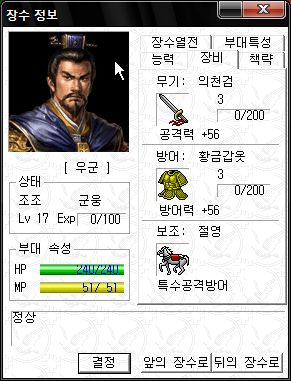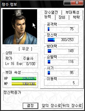 능력치는 직업이 대장군이라 그나마 쓸만한 편 ;;
