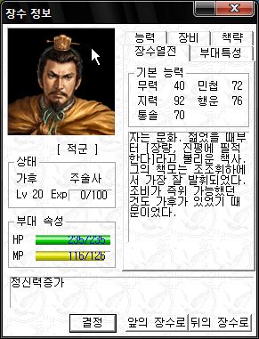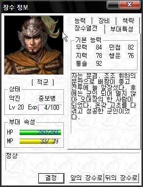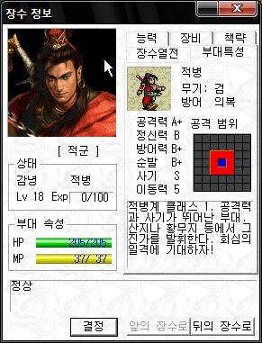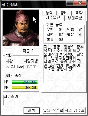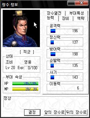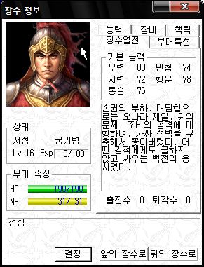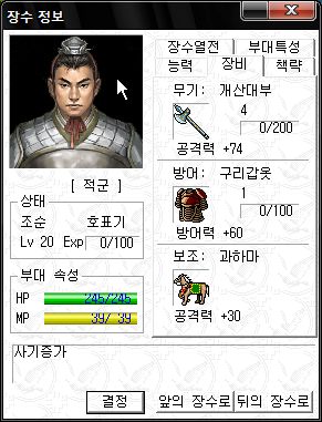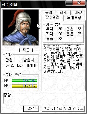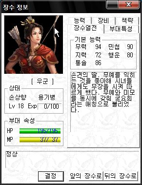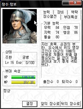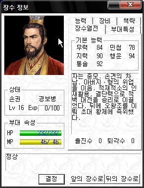 역시 오군 차세대 주력부대로서 최강의 능력치를 자랑하는군요.