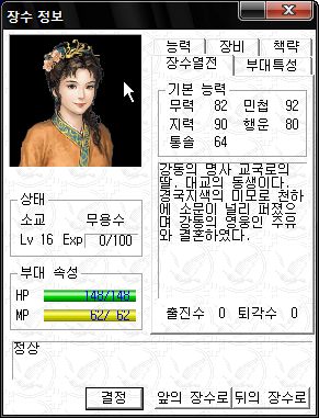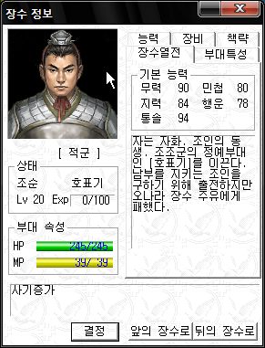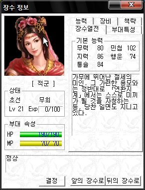 나중에 찍은 초선의 병과 모습과 능력치