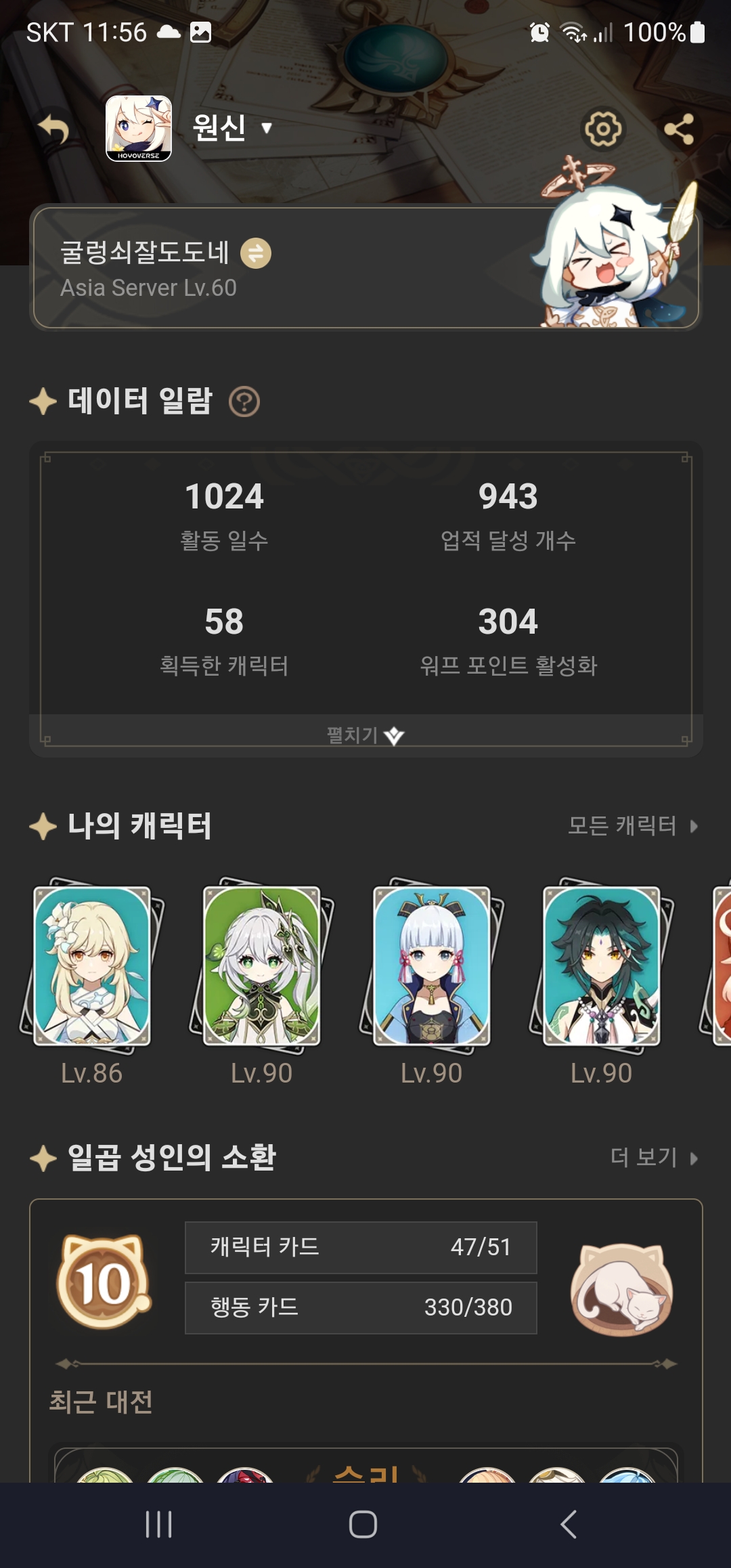 못한 업적 중에 9개가 일퀘 가챠로 얻을 수 있는 운빨 업적이고... 나머지 4개는 카드겜, 누적 낚시, 따오기 골목 모노가타리 이야기 모으기인데 (이것도 5권은 낚시로 랜덤으로 나오는거라 좀 모으다가 귀찮아서 미루고 미뤘더니...ㅋㅋㅋ)