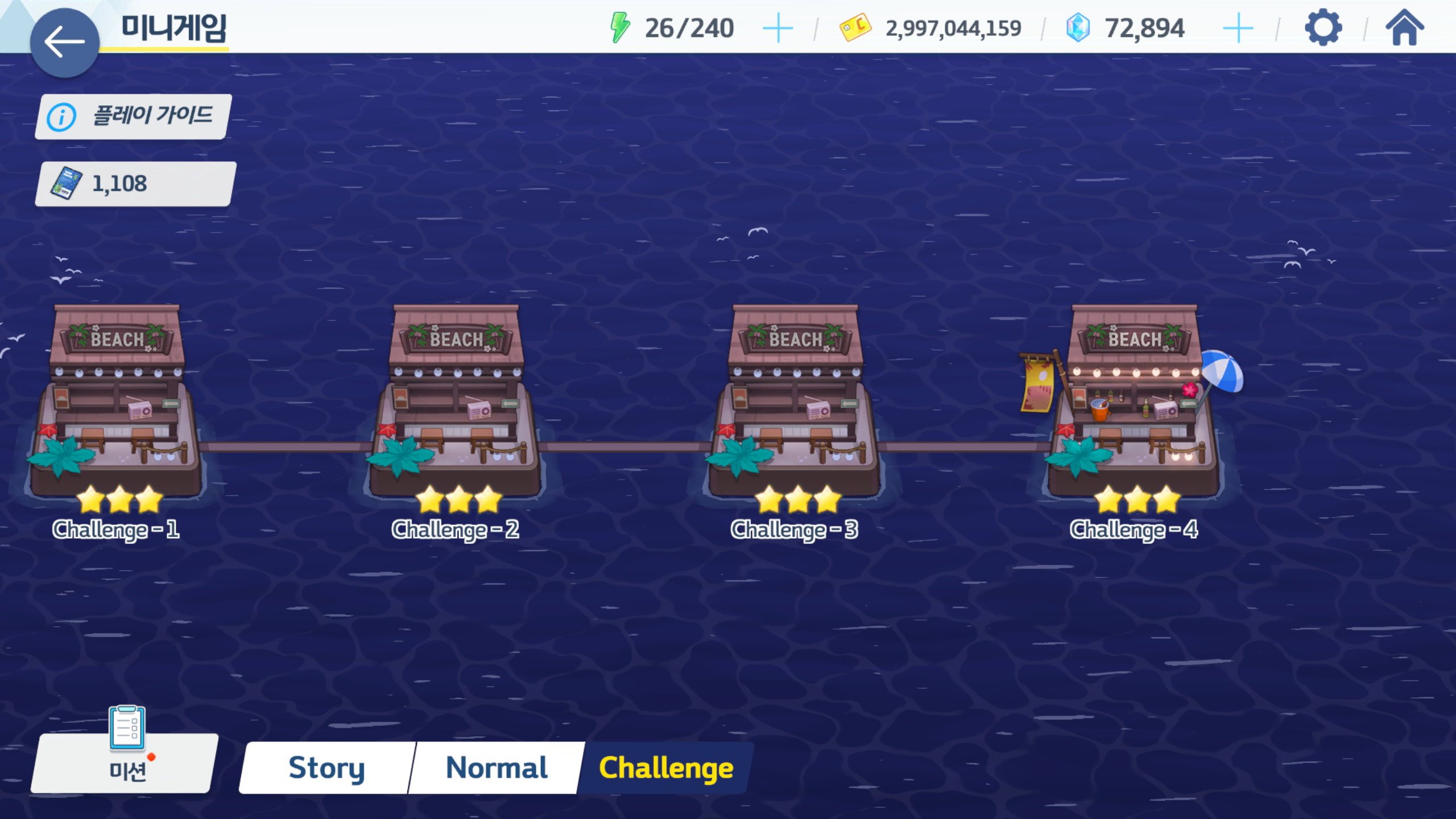 미니게임에 있는 챌린지 4개와 평소의 챌린지 4개를 모두 합쳤습니다.