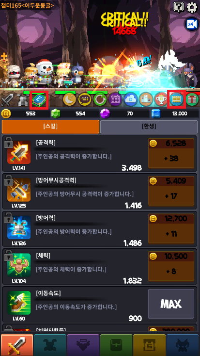 아기자기한 도트 그래픽과 수만가지 조합이 가능한 코스츔이 있으며 높은 등급의 장비와 펫, 동료등을 얻을수 있는 보스전과 특수 던전들이 수십개 마련되어 있습니다.