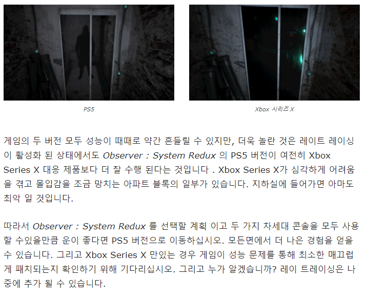 - 한편, XSX/S는 분명히 해결이 필요한 분명한 문제가 있습니다. 기괴한 성능 저하와 함께 컷씬의 프레임 속도가 실망 스럽습니다.