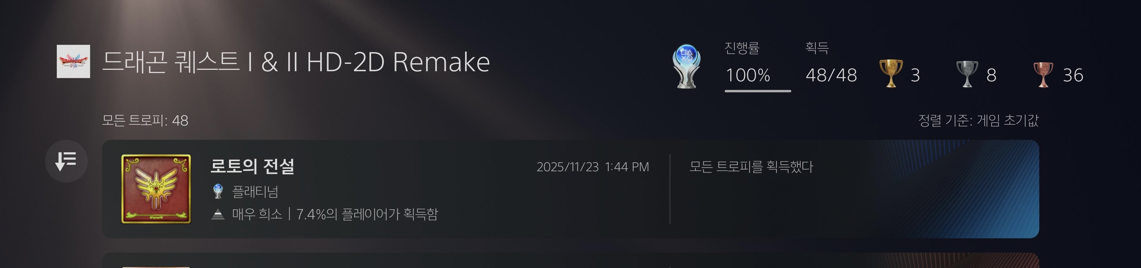 드퀘 시리즈 플래의 좋은점은 시점 지나면 못따는 트로피가 없어서 스토리 진행할때 부담이 없다는거..그래서 자유롭게 스토리 보며 진행하고 엔딩이후는 공략 참고하며 플래를 딸수 있어 회차 플레이보다 훨씬 재미 있는거 같습니다..다른 게임의 경우 시점 지나면 못 따는 플래 때문에 공략을 보며 하다 보면 당연히 약간의 스토리 스포까지 당할때도..ㅠ