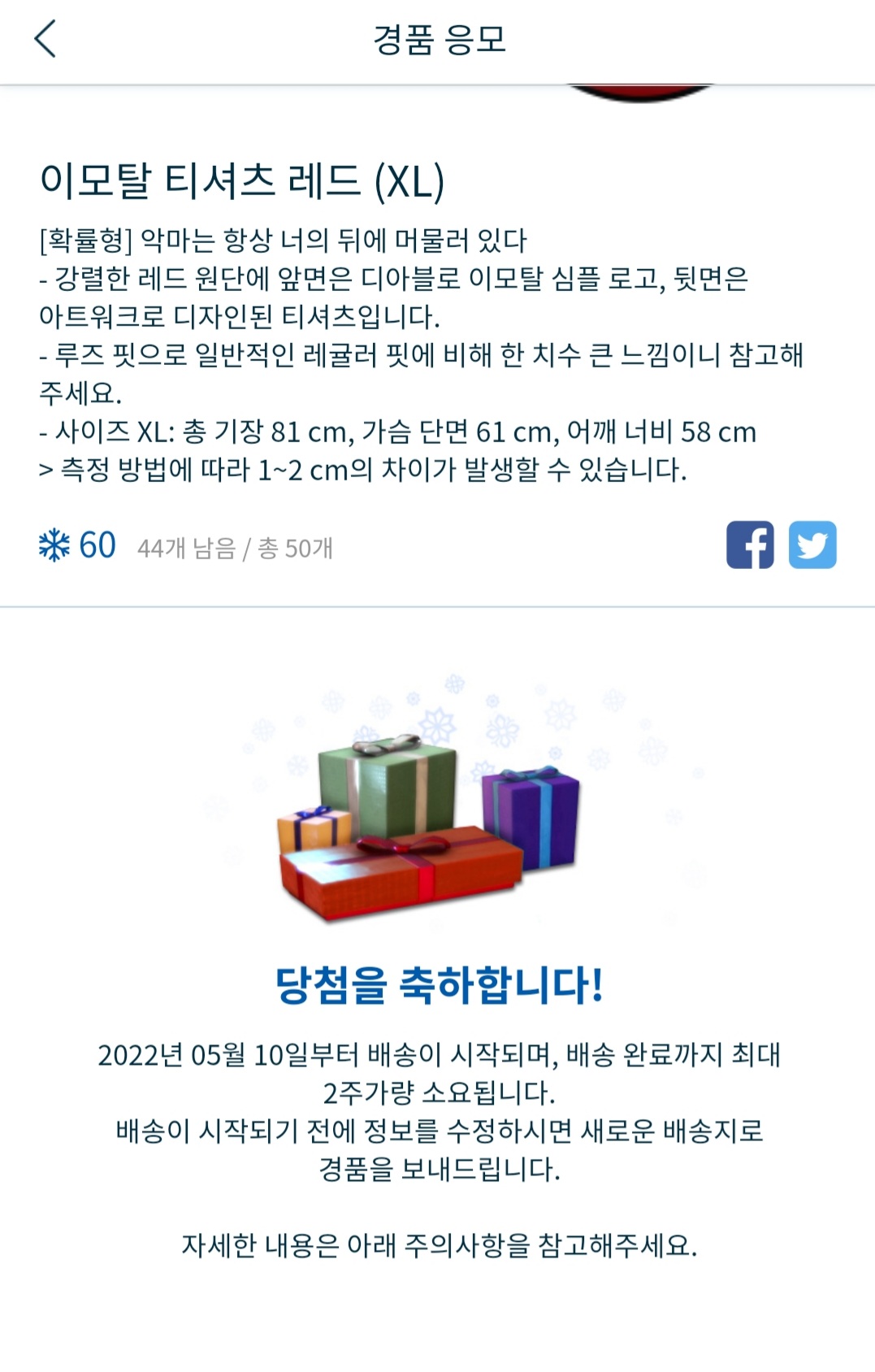 당첨되셨다고요? 그럼 배송에 필요한 정보를 입력하고 편안하게 집에서 굿즈를 받아보세요. 당첨이 안 되셨다고요? 슬퍼하지 마세요. 바로 다음주에 1천 포인트의 기회가 다시 찾아옵니다. 영웅들은 포인트를 모아서 응모할지 매주 모두 소진할지 자유롭게 선택할 수 있습니다.