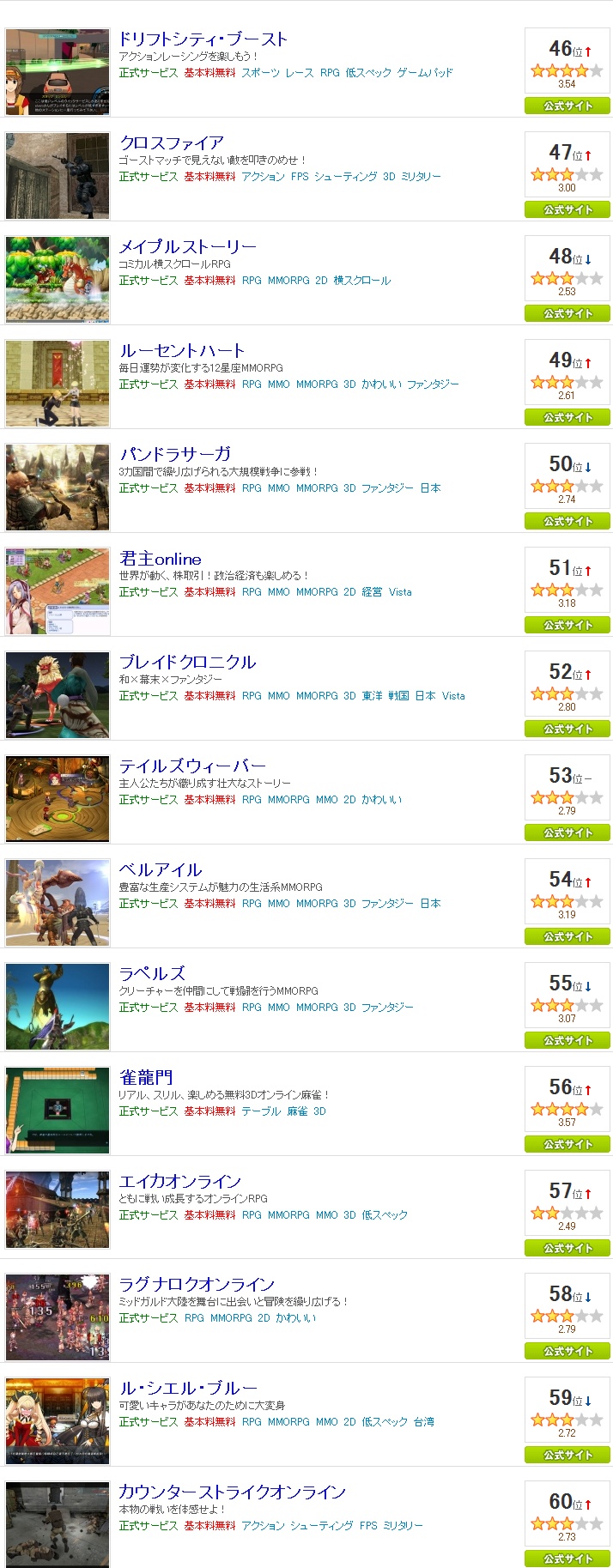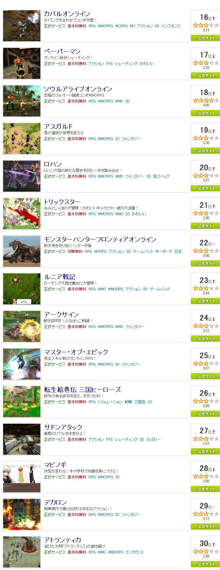 놀랍게도 1위가 감성 RPG 라는 문구로 나왔었던 프리우스 온라인 4위가 라테일이란것도 놀랍지만... 아바가 선전하고 있다는것과 페이퍼 맨도 의외의 선전중 드래곤 네스트는 순위권에서 급하락중..꾸준한 던파와 팡야 그리고 그라나도 역시 프리우스가 인기가 좋은건 이것 때문인가.. 로리콘이 많아서 ..