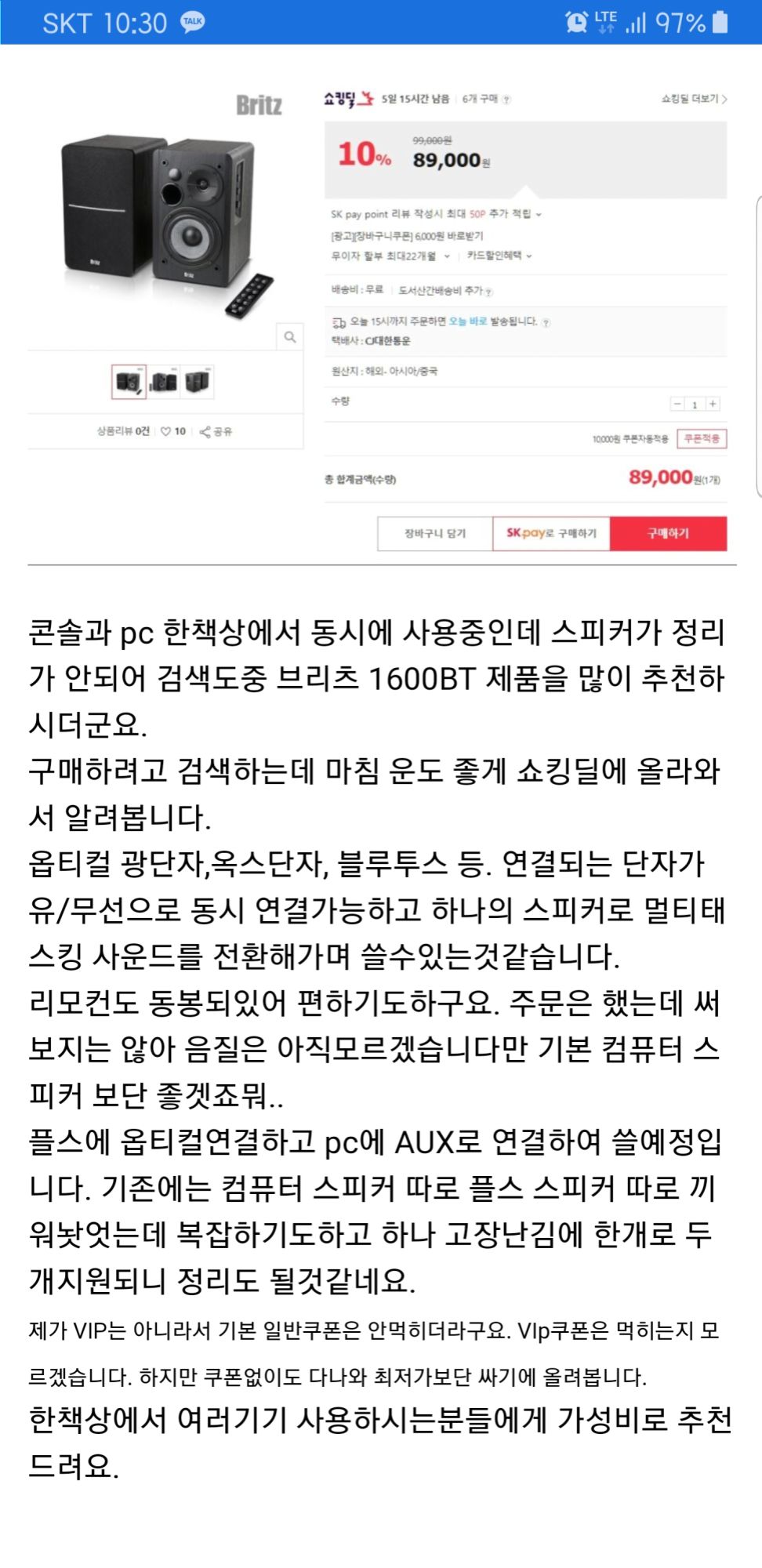 ![[11번가]쇼킹딜 브리츠 1600BT 스피커/ 89000 무배_1.jpg](https://i3.ruliweb.com/img/19/07/09/16bd402c09963b82.jpg)