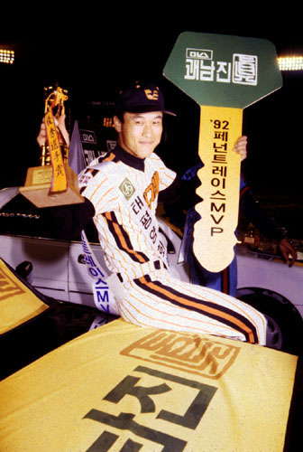 92년에는 국내 최초의 40홈런의 벽을 허물고 41개의 신기록을 수립하며 2년 연속 MVP를 거머쥔다.