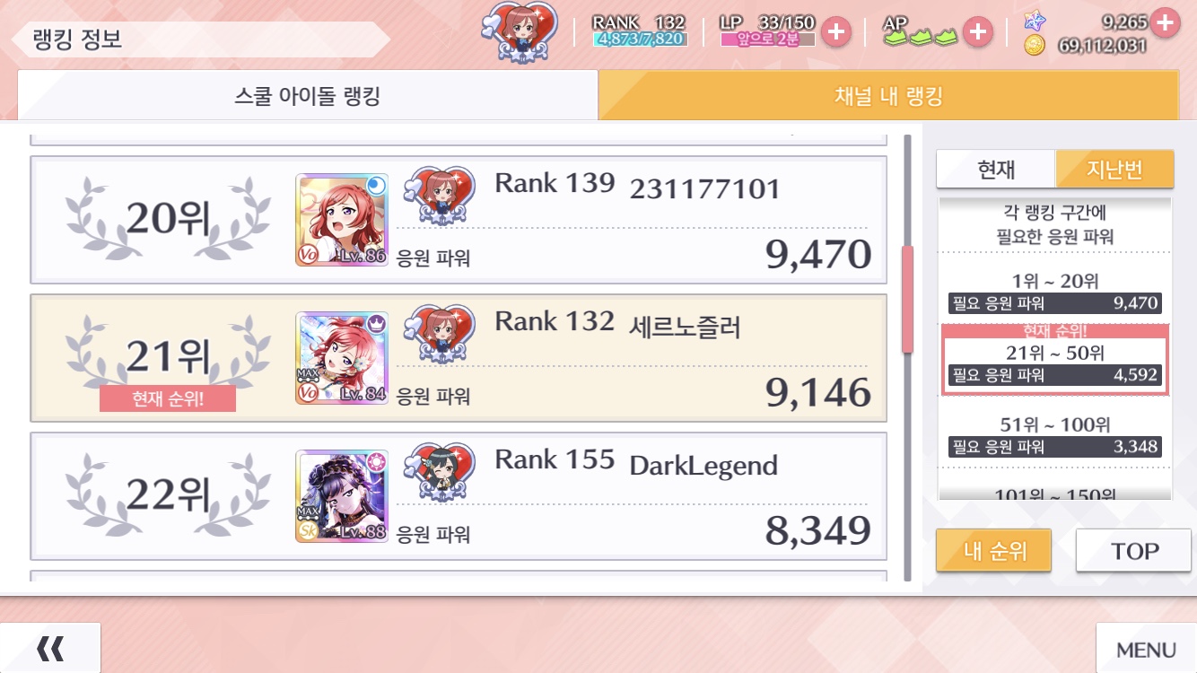 이게 뭐여;;; ㅠㅠ 20위 턱걸이 점수가 9400점... 저는 9100점 (....)