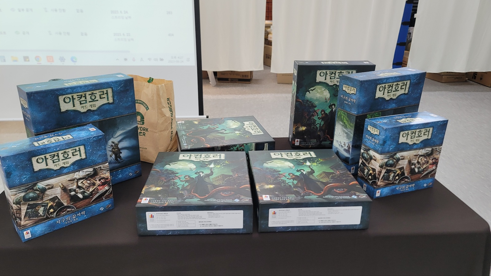 2층 행사장 앞쪽에는 곧 출시하는 아컴호러 신작 확장이 배치되 있었습니다.