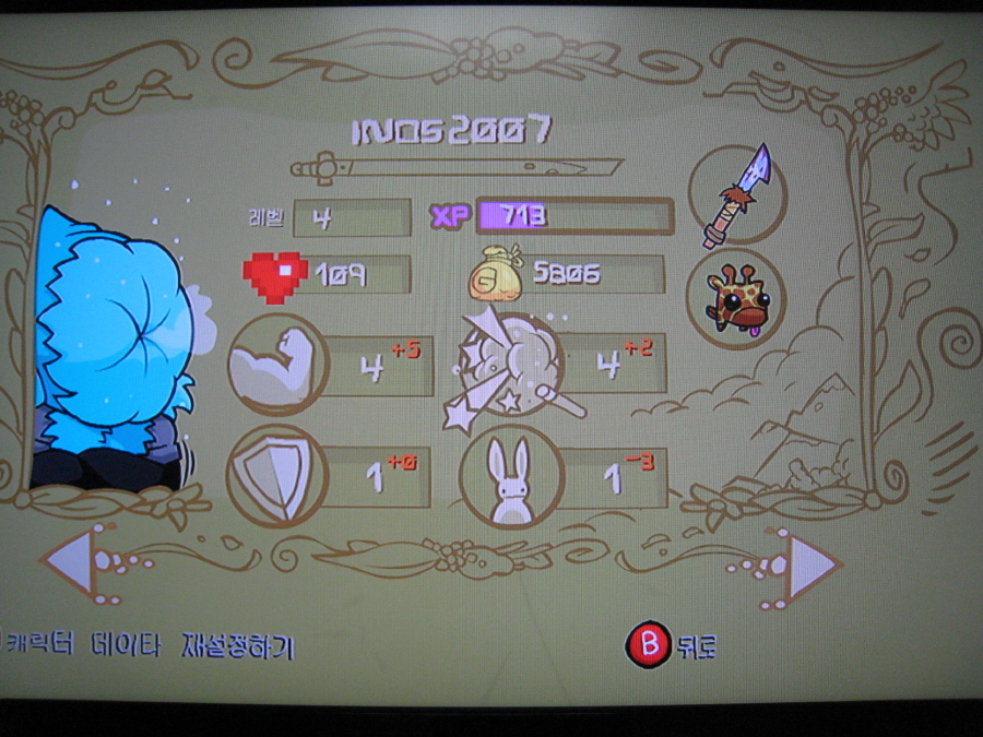 6 클리버 = +5 강도, -2 매직, +2 민첩성 | 구입했습니다 : 스노 스토어